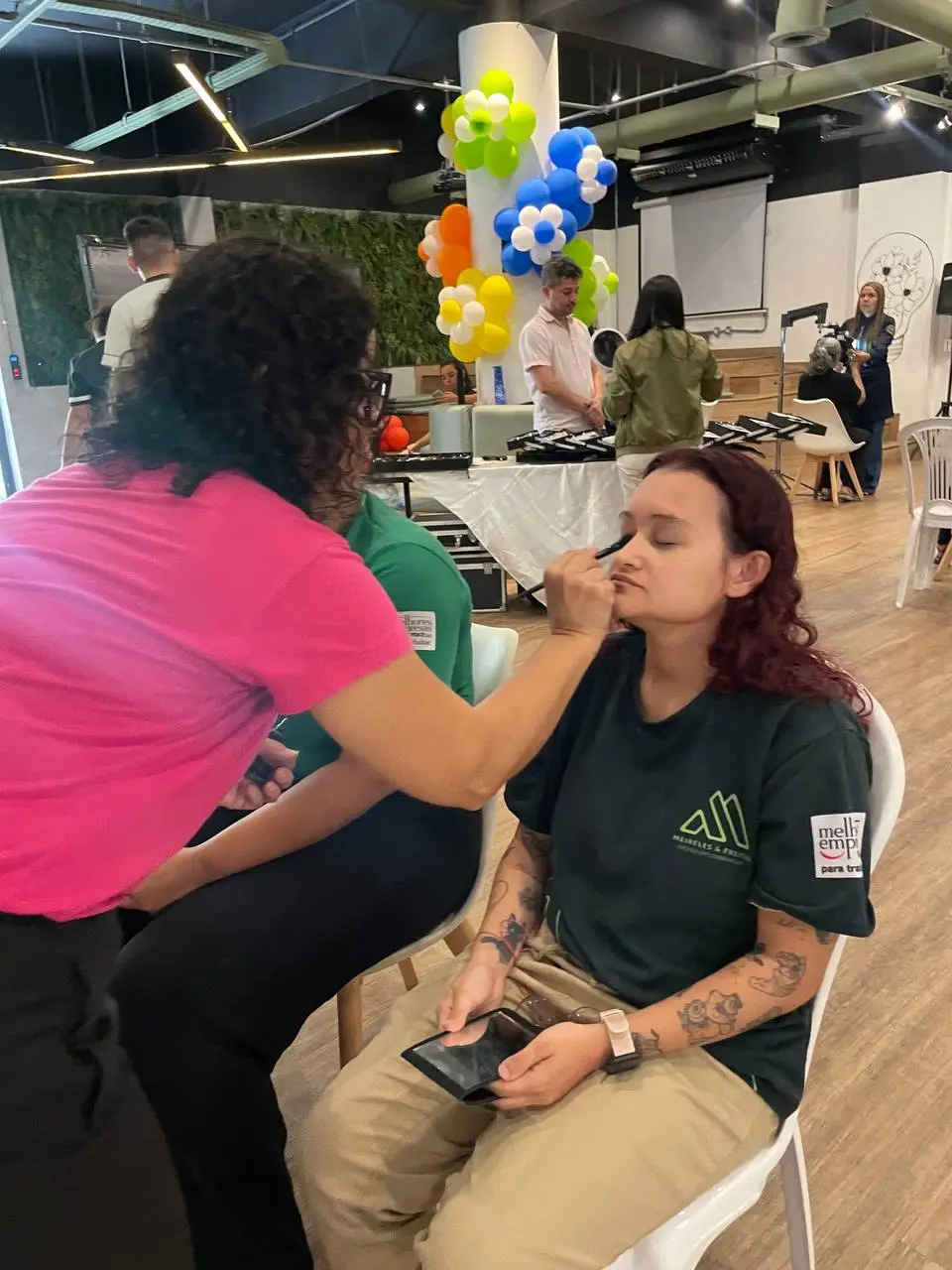 - Parceiros essenciais: Tivemos o prazer de receber a Ótica MR, trazendo clareza não só para a visão, mas para a importância de cuidar dos sentidos. Um Designer de Sobrancelhas profissional esteve presente, oferecendo um serviço que realça a expressão e molda o rosto, devolvendo a confiança. A Mary Kay complementou o dia com dicas de autocuidado e maquiagem, lembrando a todas que reservar um tempo para si é fundamental.